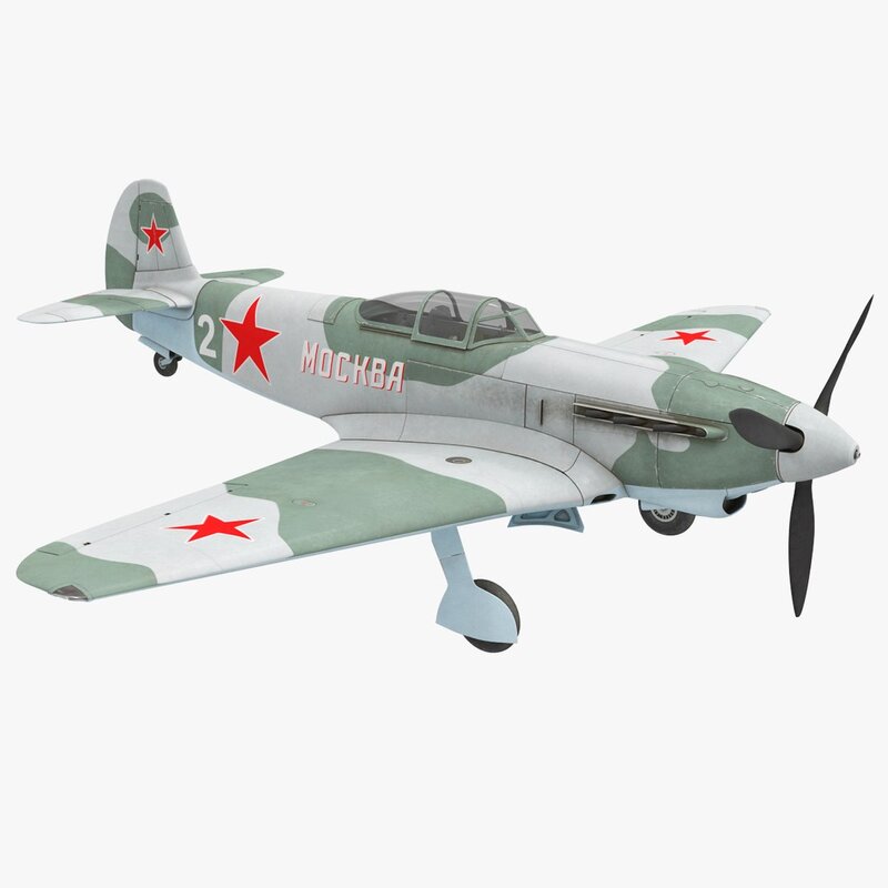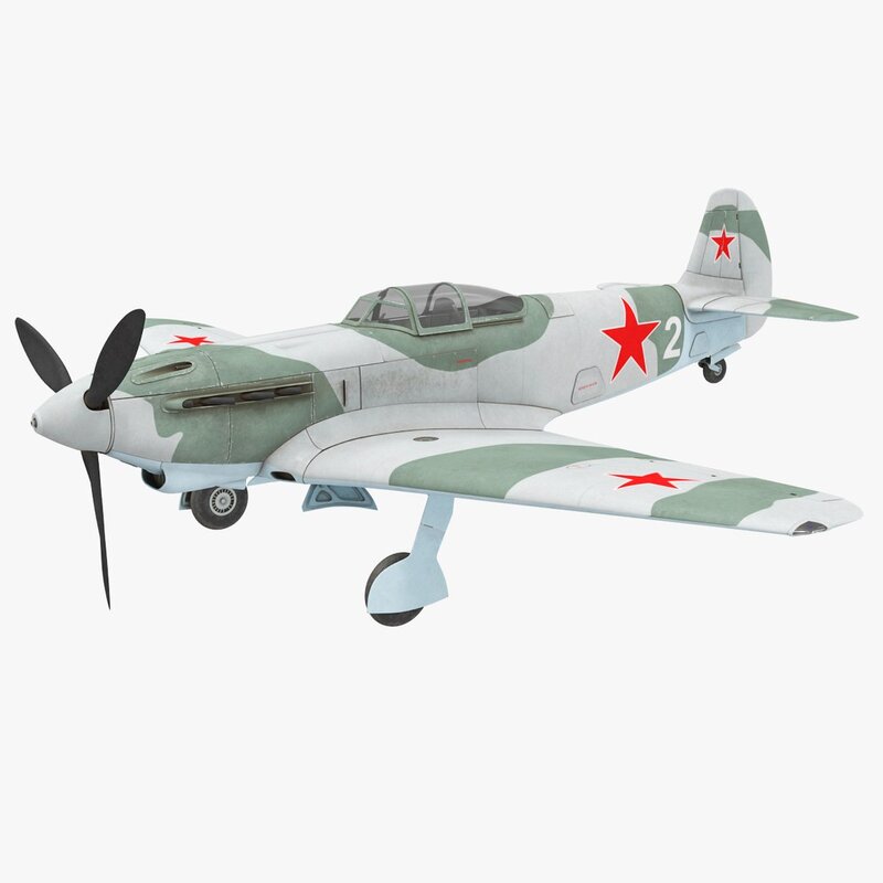 This Yakovlev Yak-9 Soviet World War II Fighter 2 Rigged is a high quality model that will enhance detail and realism to any of your rendering projects. The model has a fully textured, detailed design that allows for close-up renders, and was originally modeled in 3ds Max 2012 and rendered with V-Ray.
