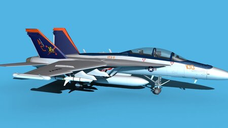 This model was built near to scale and includes the textures and livery you see here. Model is fully textured with all materials UVW mapped and applied. Most materials are planar mapped and major materials include texturing. These models render very well and look very realistic using good animation and rendering technique. It can be used in an animated or static position within an animated video or possibly for programming for a flight simulation application. This model was not designed for 3d printing, these are digital files only. The models come in several formats. Exported formats are prepared well to work correctly when used in the application aligned with the format of the export Many animateable features are included like landing gear, landing gear doors flaps, flaperons, rudders, canopy, missiles and propellers on the electronics packages. Missiles can be launched, and external fuel tanks can also be dropped. Lots of details are in the cockpit. This model also comes with AGM-88 x2, 2 x 480 gal external fuel tanks. These models also include paint schemes very much similar to actual air combat units of the US Navy.