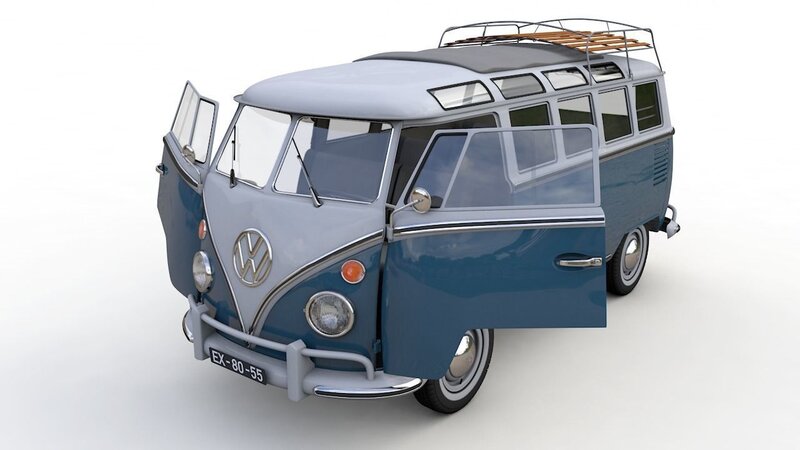High detailed 3D model Volkswagen T1 Microbus Deluxe 1966, from inside and outside