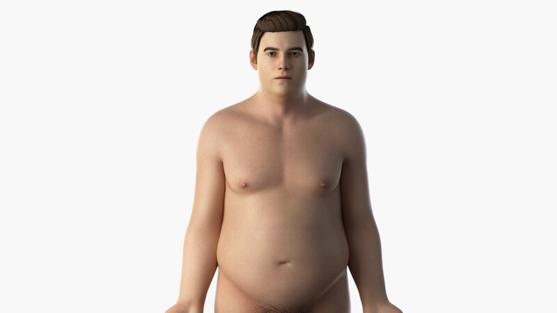 Obese Male Skin, Skeleton And Vascular System Rigged