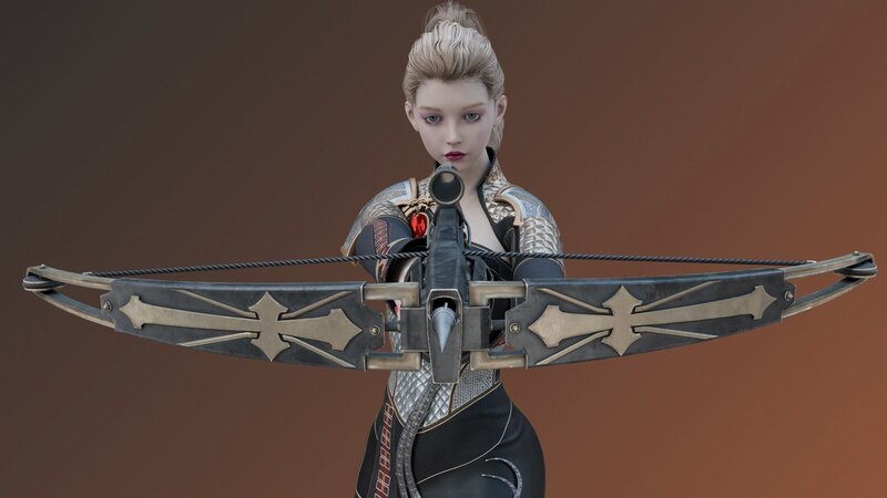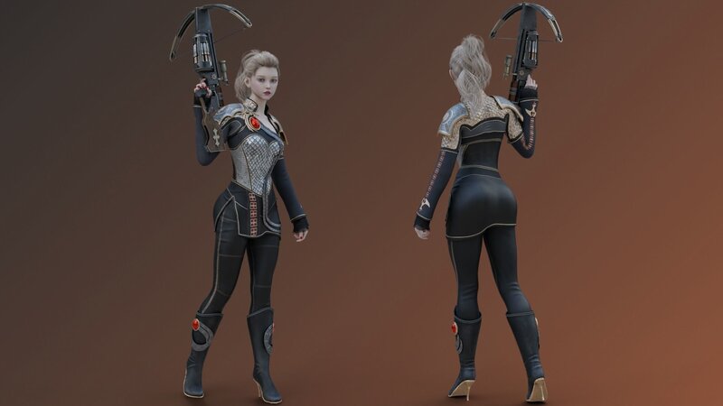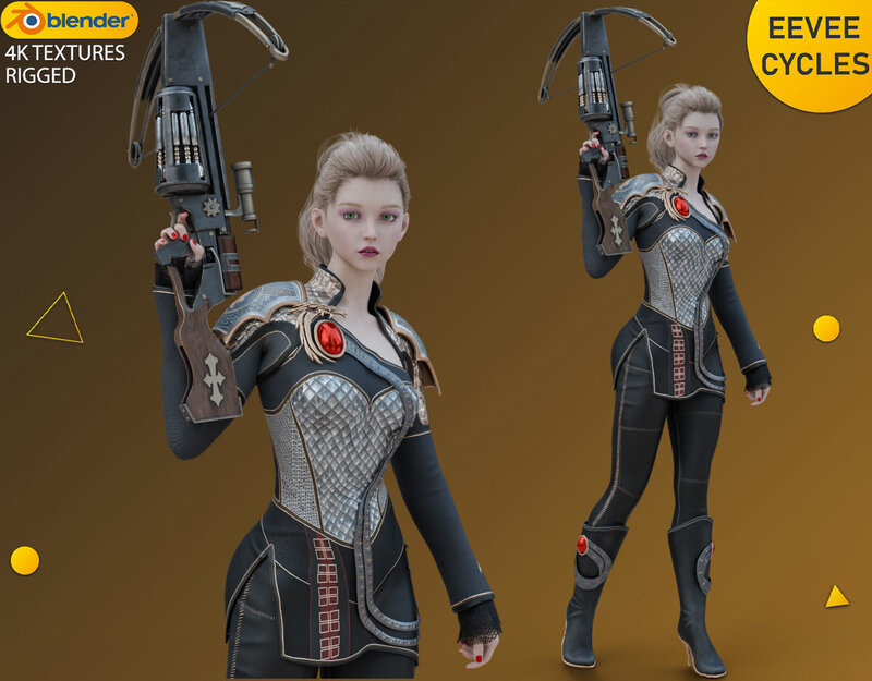 Cute Girl with Steampunk Crossbow Fighter Armor Suit - Rigged - Low-poly 3D model
