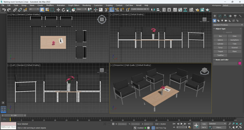 3D Models of waiting room furniture . The models has been created with 3D Studio Max 2022 and Blender 2.93. All the models are low poly, basic but realistic and are ideal for 3D scenes that require few polygons. They can be used for advertising visualitations and also for games or applications. It has been created in different 3D Studio Max versions and also in FBX, OBJ and blend.