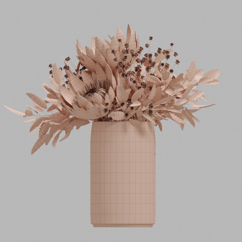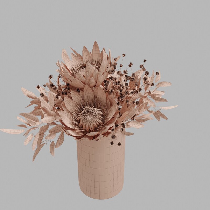 Protea set of flowers 3D model
