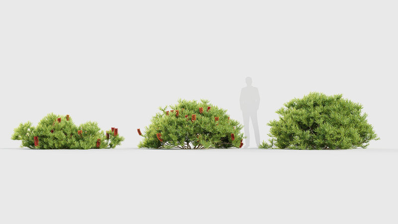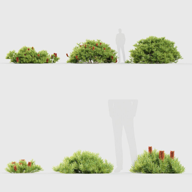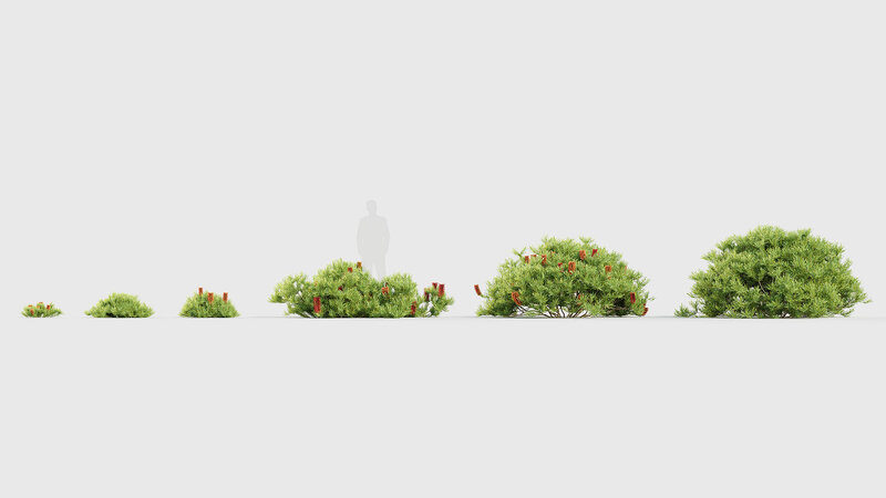 This product Banksia spinulosa - Hairpin Banksia comes in 6 unique 3D model variants with different heights, ages and forms to suit your production needs.