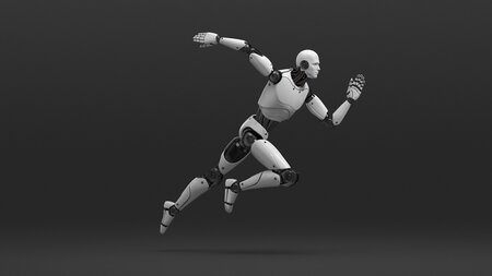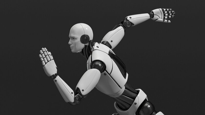 Advanced Male Humanoid Robot Running Pose